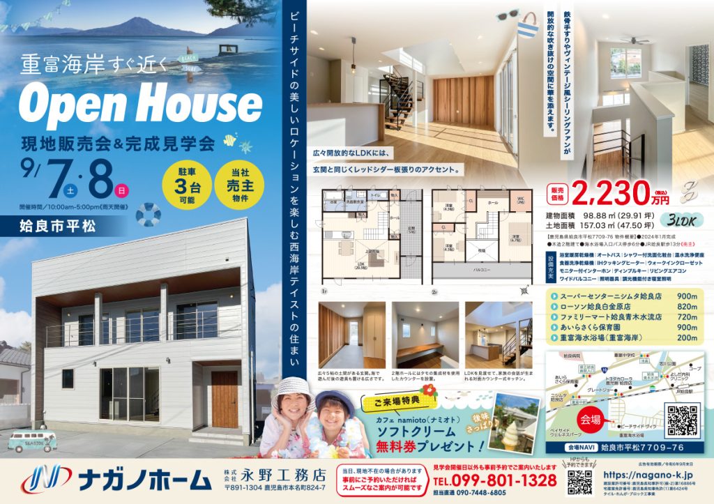 姶良市平松 9月7日(土)・8日(日) 現地販売会&完成見学会 ご希望日時 ※必須 選択してください 9月7日(土) 9月8日(日) 選択してください 10時00分 10時30分 11時00分 11時30分 12時00分 12時30分 13時00分 13時30分 14時00分 14時30分 15時00分 15時30分 16時00分 16時30分 お名前 ※必須 メールアドレス ※必須 電話番号 - - ご住所 備考 2024.08.20|CATEGORY:新着情報