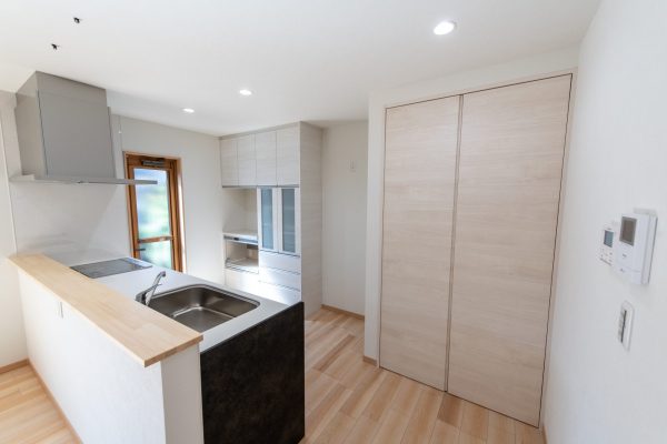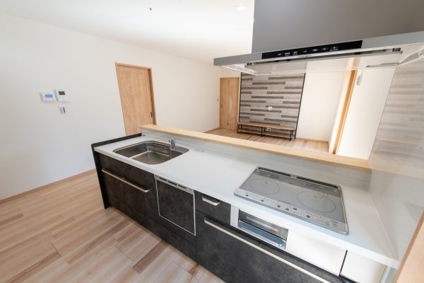 使い勝手のいいシステムキッチンからは、家族の寛ぐ様子が見えるので安心してお料理が作れます。
