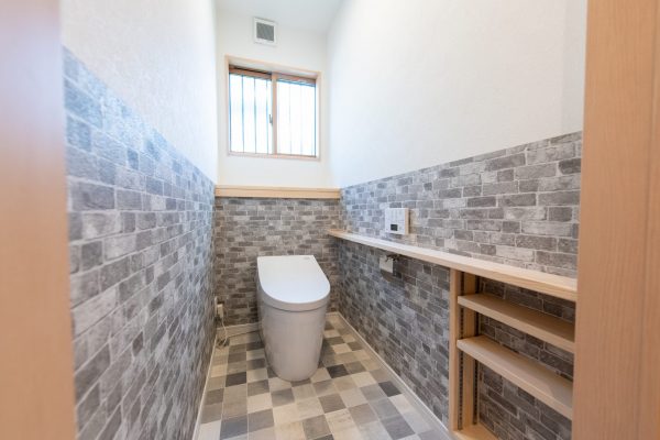 何と! 部屋の中に外壁材を使っています。白壁とのコントラストがとってもおしゃれです♪