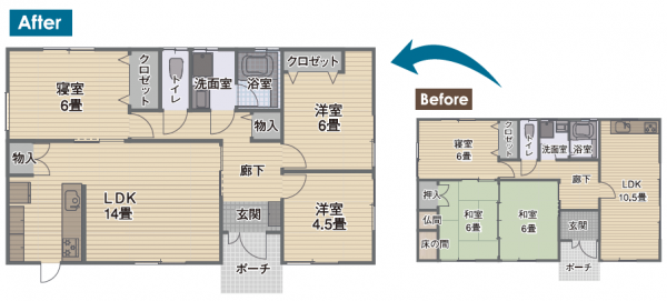 こちらは、元々LDKでしたが、2つの部屋に変わりました。