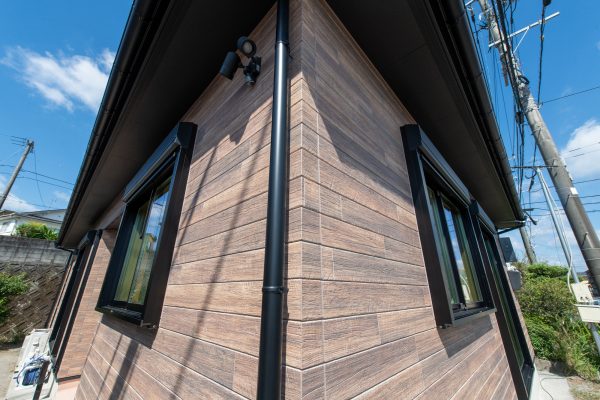 ほぼ新築と見間違う外観になりました。Kmewの木目調サイディングとサッシ