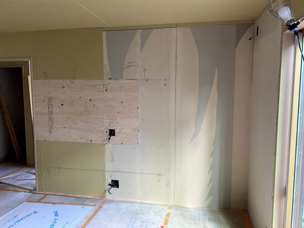 今回テレビを壁掛けにするので、合板の下地を入れました。